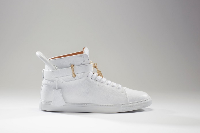 La sneaker diventa artigianale, realizzata con passione da artigiani italiani, per la precisone nelle Marche, ha le serrature ed il lucchetto in oro 18k, pelli e materiali di altissima qualità.
