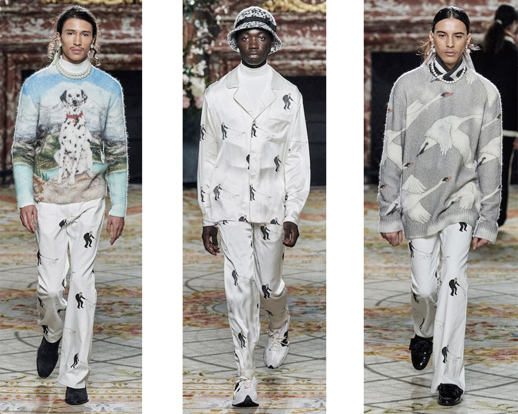 Charaf Tajer, designer di Casablanca, ambienta il suo show fall-winter 2020 sulle rive del lago di Garda. Lo stilista mescola architettura e paesaggio in una collezione luxury. L’introduzione della maglieria in cashmere nella collezione, offre un ulteriore livello di comfort. La tuta da ginnastica è proposta in misto cashmere. Ispirandosi alla decorazione d’interni, Casablanca lavora sul monogram. Forme geometriche guidate da miscele di colori.