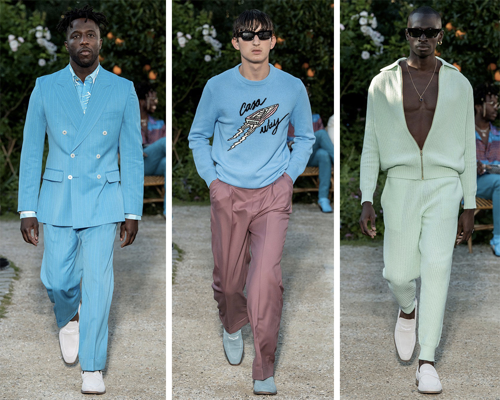 Casablanca prende vita in una tavolozza che evoca contemporaneamente i campi in terra battuta di Stade Roland Garros e la terracotta cotta al sole del Nord Africa; accentati con freschi bianchi da tennis e schiocchi di pastello. Le silhouette ispirate all’abbigliamento sportivo sono raffinate ma rilassate, e presentate in croccanti cotoni e peluche in spugna. L’estetica di Casablanca è una fusione tra lux e leisurewear, un perfetto equilibrio tra comfort ed eleganza. Casablanca reinterpreta gli ambienti senza tempo di una lussuosa suite di un hotel storico o un bicchiere di champagne fresco al tramonto sulla terrazza di un country club privato. Aggiungendo una vivacità di colori si mantiene il marchio giovane e facilmente inseribile in una pletora di vita quotidiana.