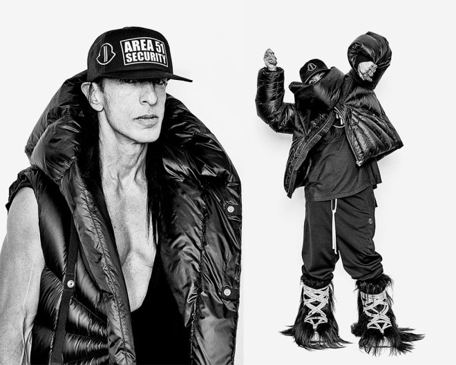 Il designer ha sviluppato la collaborazione genderless sull’idea di un piumone attraverso forme concettuali e architettoniche. Volumi estremi sono reinterpretati in calze di nylon Moncler ed espressi in una tavolozza di nero, argento e polvere, realizzata in una serie di trapuntature a raggiera. Oltre a bombardieri, puffers e parka, Owens propone anche modelli in cachemire, magliette stampate, pantaloni della tuta, bermuda e persino un’opzione di scarponi da neve.