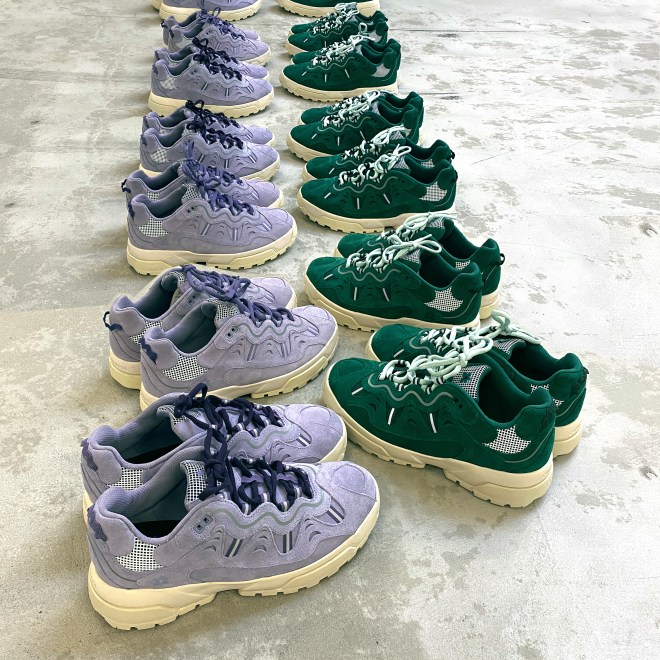 Converse e GOLF le FLEUR * sono tornate con le nuove colorway della Gianno. Dopo le loro iterazioni “Parfait Pink” e “Skylight”, le due etichette hanno offerto questa volta versioni con sfumature scamosciate, disponibili in “Green” e “Violet”.