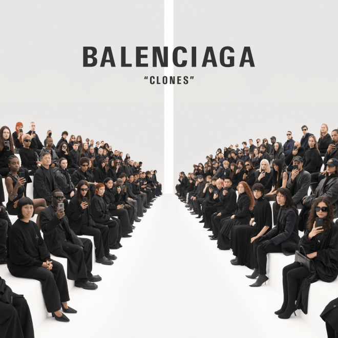 Qualche volta ritornano, anche i cloni. Così il direttore creativo di Balenciaga, Demna Gvasalia, ha presentato la collezione Spring 2022, replicando in digitale l’artista Eliza Douglas sovrimponendo il suo volto su 43 modelli cloni. Nel video sotto la direzione di Quentin Deronzier su un catwalk minimalista e essenziale, con la colonna sonora ricreata da una voce ai che recita con intonazione metallica il testo della canzone La vie en rose, tornano linee hackerate; una sfilata di cloni, per riaprire il dibattito sul tema dell’unicità e della contraffazione del mondo della moda.