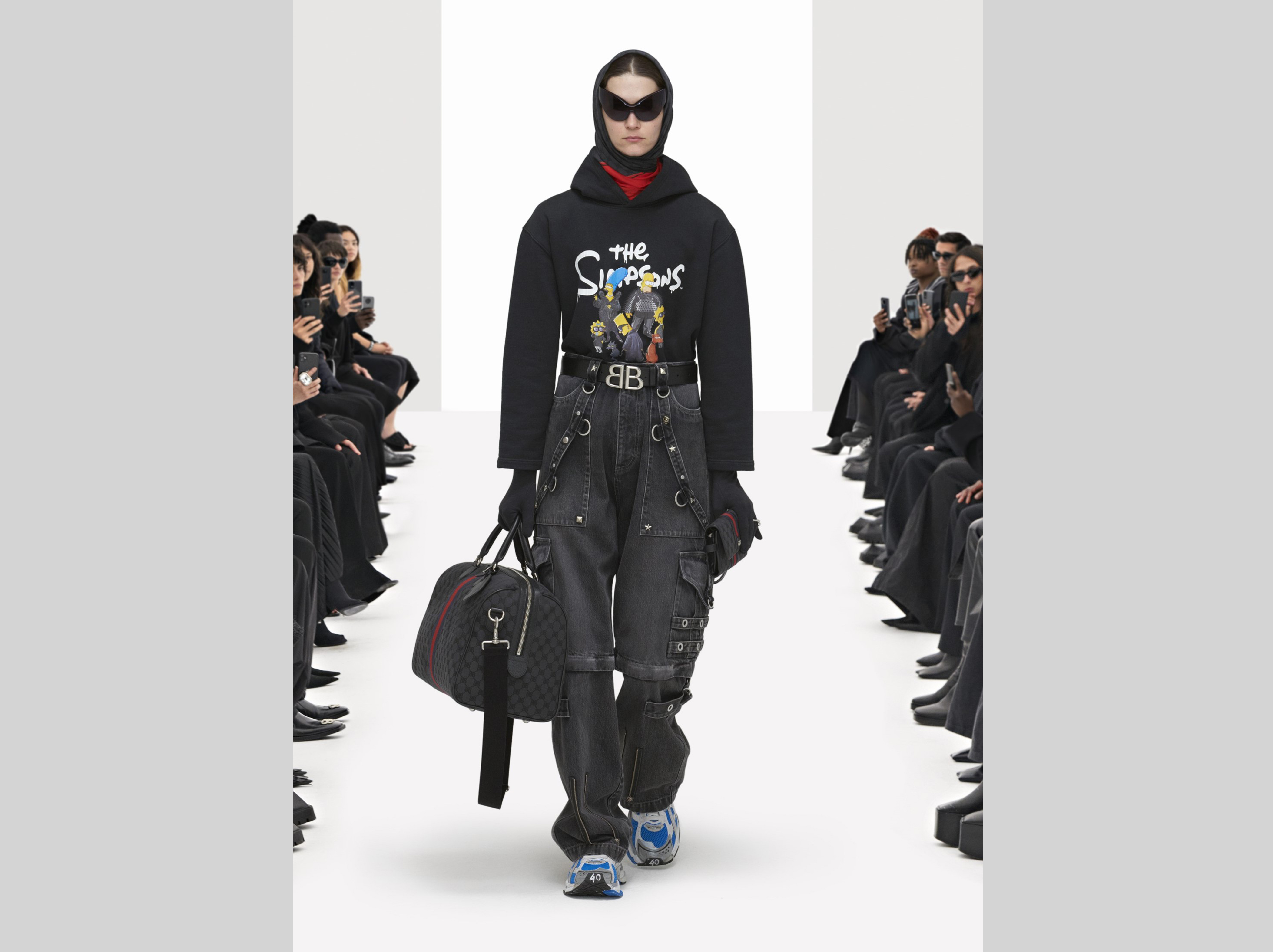 Infine, ispirandosi al mondo delle graphic hoodies fasulle, i personaggi dei Simpson appaiono stampati su felpe e T-shirt mentre indossano capi della FW21 di Balenciaga.