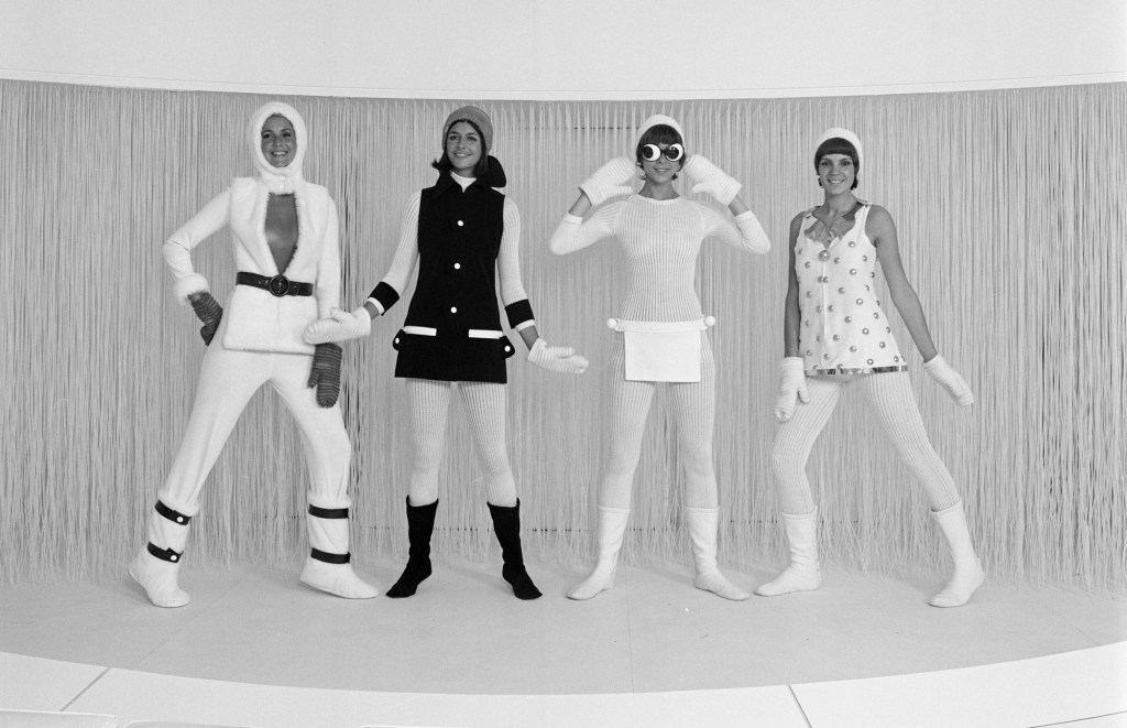 Designer Courrèges introduced the mini skirt in the women’s wardrobe: it is said that it was invented by the English designer Mary Quant but became famous thanks to Courrèges who introduced it in the haute couture fashion shows. Courrèges is also the inventor of the legendary fuseaux, pants that dress like pantyhose. In 1965 he launched the famous Lunettes Eskimo, sunglasses with very large lenses and a thin slit in the center reminiscent of a ajar eyelid. One of his most distinctive garments is the “petite robe blanche”, the white mini dress, which he proposed in many collections and which became very common among women in the seventies.