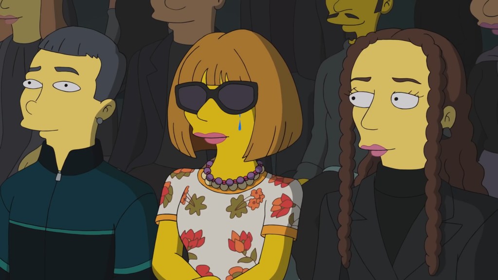 Il cartoon di Anna Wintour, seduta naturalmente in prima fila, si commuove quando Marge, che incarna tutte le donne che sognano la moda dalle loro case magari in tuta o in pigiama, chiude la passerella avvolta in un abito d’oro, e quando Marge elettrizzata per la sfilata le chiede quando sarà la prossima settimana della moda, si sente rispondere: “Darling, questa è Parigi, ogni minuto è una fashion week”.