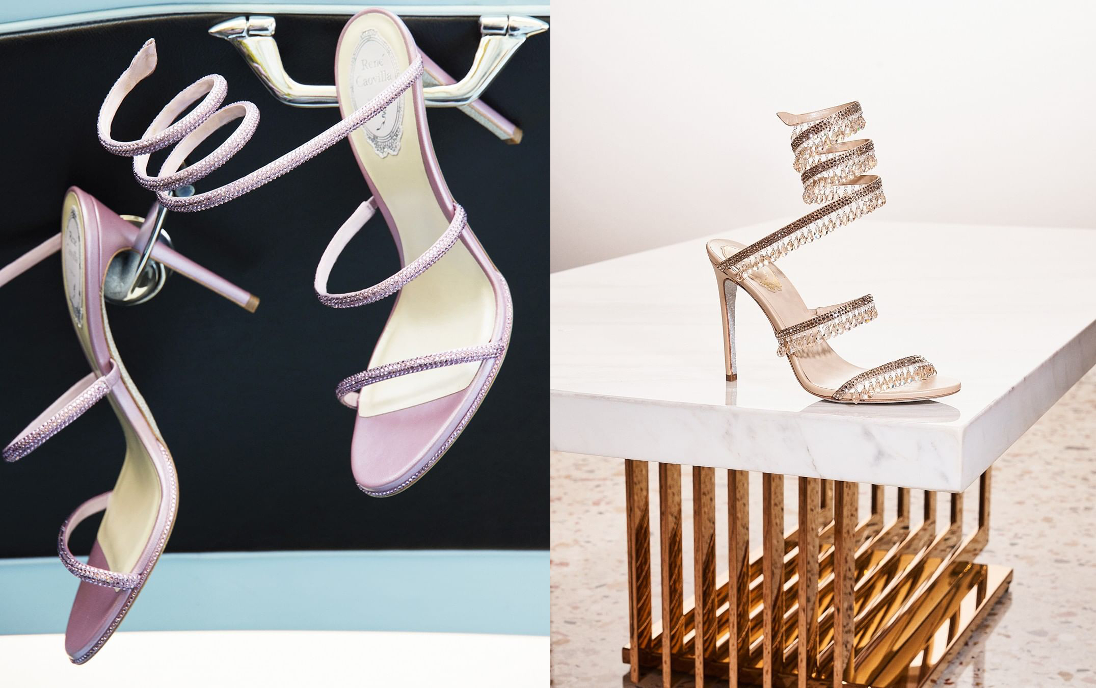 René Caovilla delinea un percorso verso la rinascita, in cui la donna ritrova il gusto per l’eleganza; la nuova Chantel presenta un accessorio prezioso interamente fatto a mano con strass Swarovski e gocce di cristallo dall’ispirazione orientale, La famiglia Cinderella è stata interamente ripensata dando vita a Lolita realizzata in prezioso pizzo laminato arricchito da cristalli dal taglio geometrico. L’eleganza che strizza l’occhio al daily, sarà la sua arma vincente.