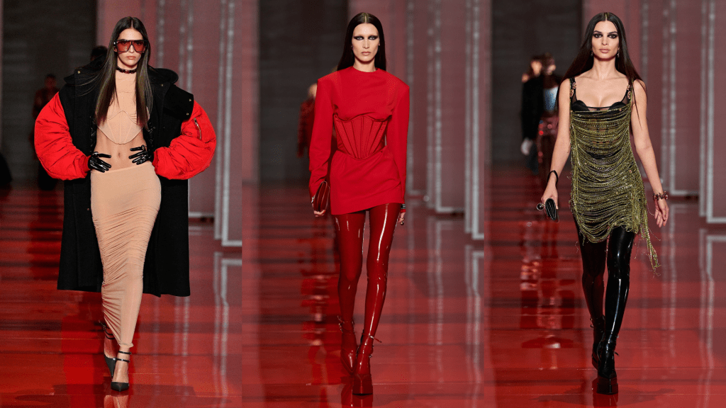 Donatella Versace‘s woman for fall / winter 2022/2023 is very despicable, confident and sensual. The main element of the collection is the couture-derived bustier: nude dresses that fit like a second skin, latex leggings and candy pink bustiers to wear over jeans. As always, the designer’s final catwalk was not lacking among models including superstars Emily Ratajkowski, Precious Lee, Bella Hadid and supermodel Gigi Hadid.