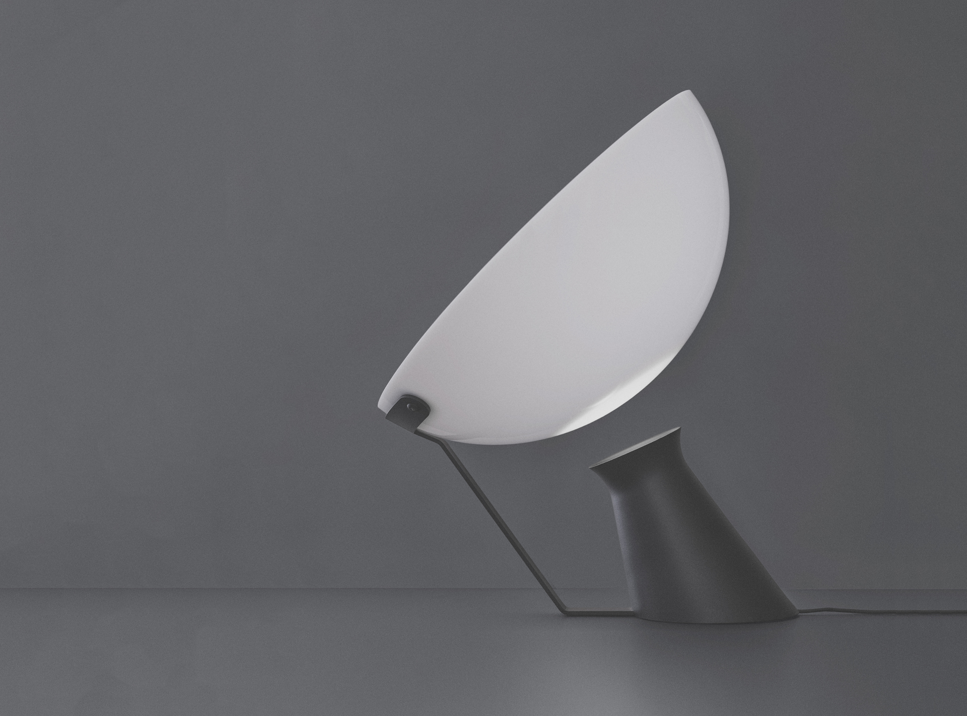 Real objects of desire such as Aida, the table lamp created by the Italian architect, sculptor and designer Angelo Mangiarotti, which seems to defy gravity with its visual disconnection between the base and the lampshade, with a balanced and elegant silhouette.