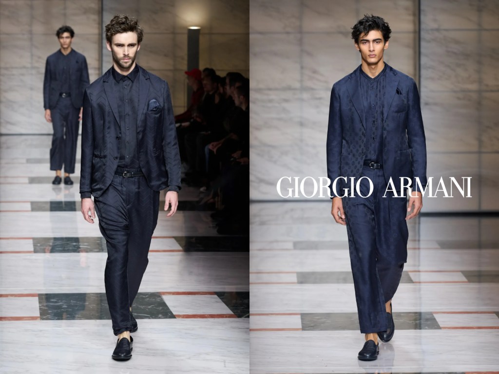 The Armani show comes to life in Via Bergognone under the banner of timeless sophisticated elegance, on the notes of a dreamy sound inspired by Ludovico Einaudi, among nuances King George loved grey, dove grey, black, red and midnight blue.