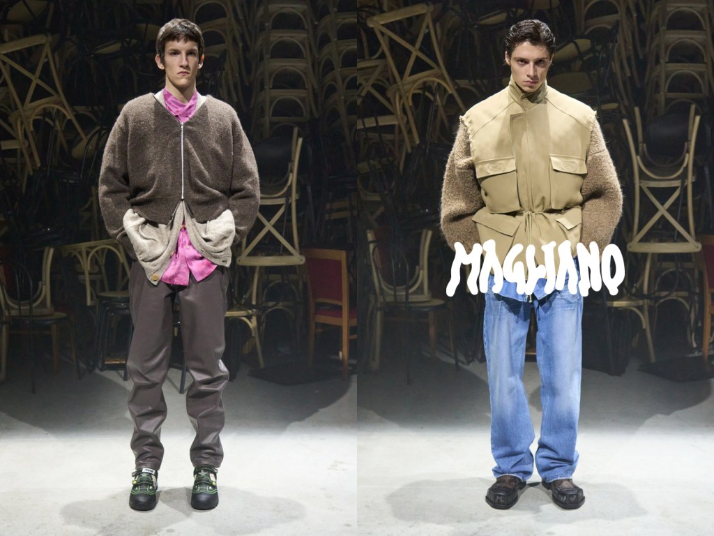 But this Fashion Week was the consecration of Magliano, to welcome the viewer with an installation of crowded chairs that form an unstable wall, which become seats for the guests of the show, offering them the feeling of enjoying the show in the balance. A collection made of overlays and weaves, knitwear remains a key element, both for clothing and accessories. Fluid lines in the outerwear and trousers, intersecting belts with drawstrings, in an interesting game of materials such as wool jersey, tulle, nylon crêpe, fleece and denim.