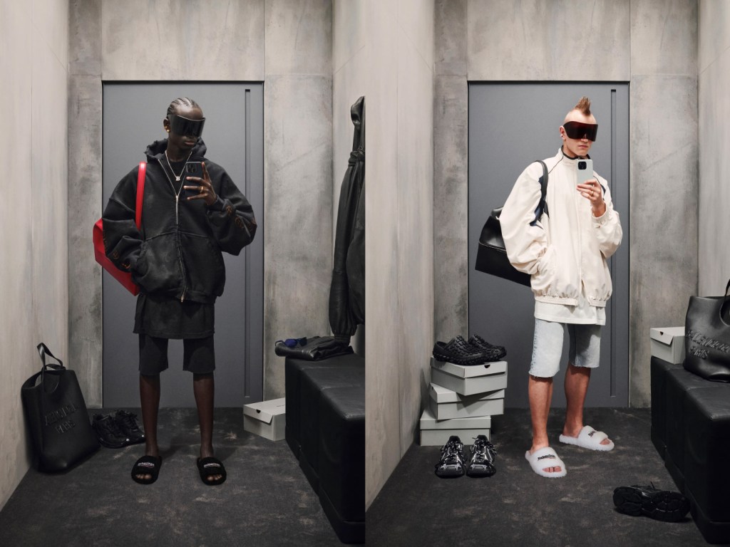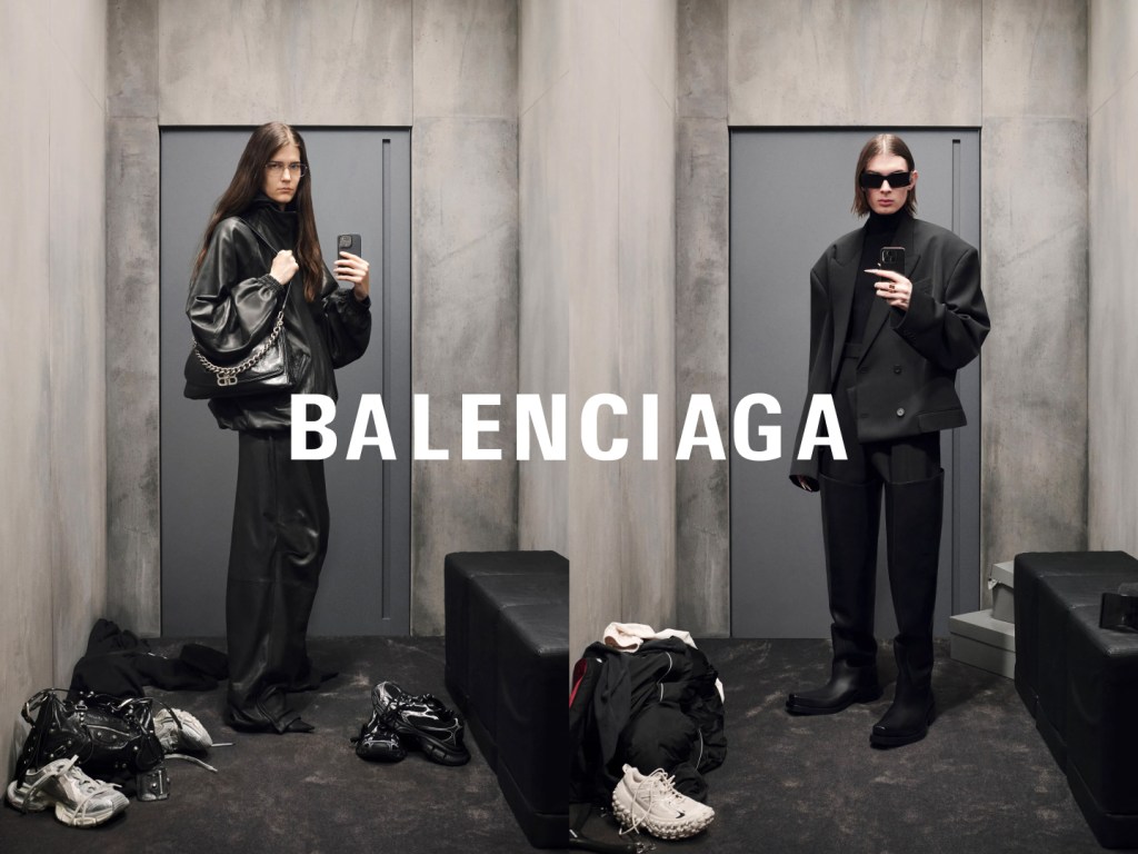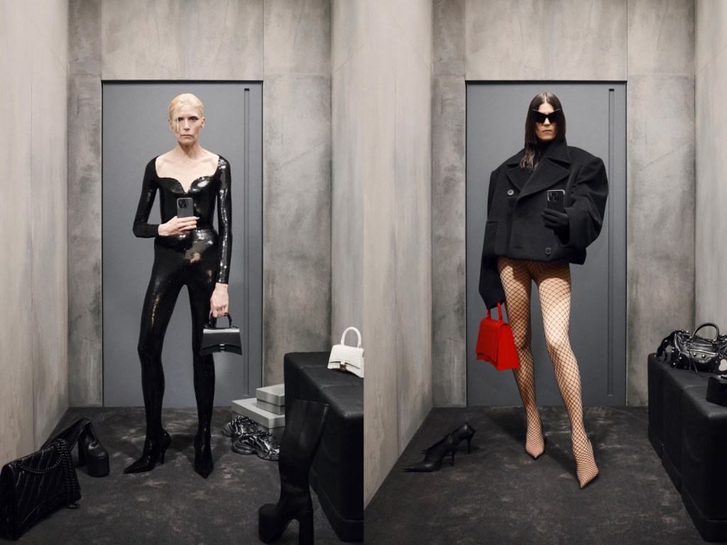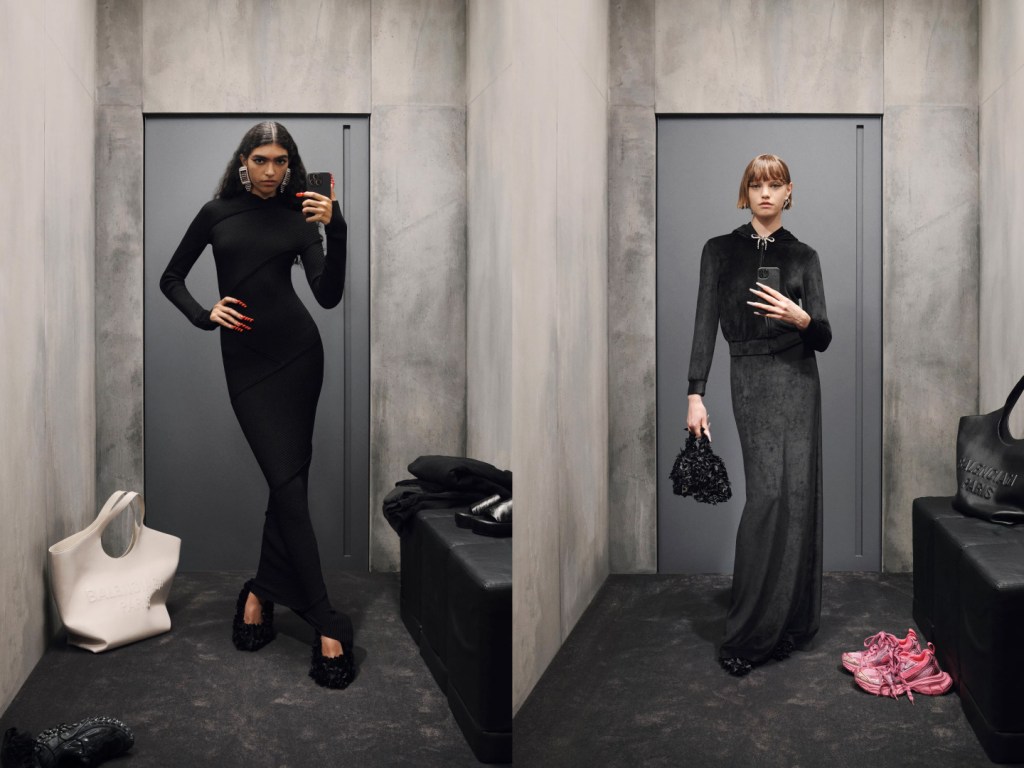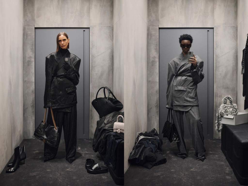 Demna Gvasalia ha presentato la sua collezione Pre-Fall 2023 di Balenciaga con una campagna molto sobria, ambientata nei camerini di una boutique della maison.