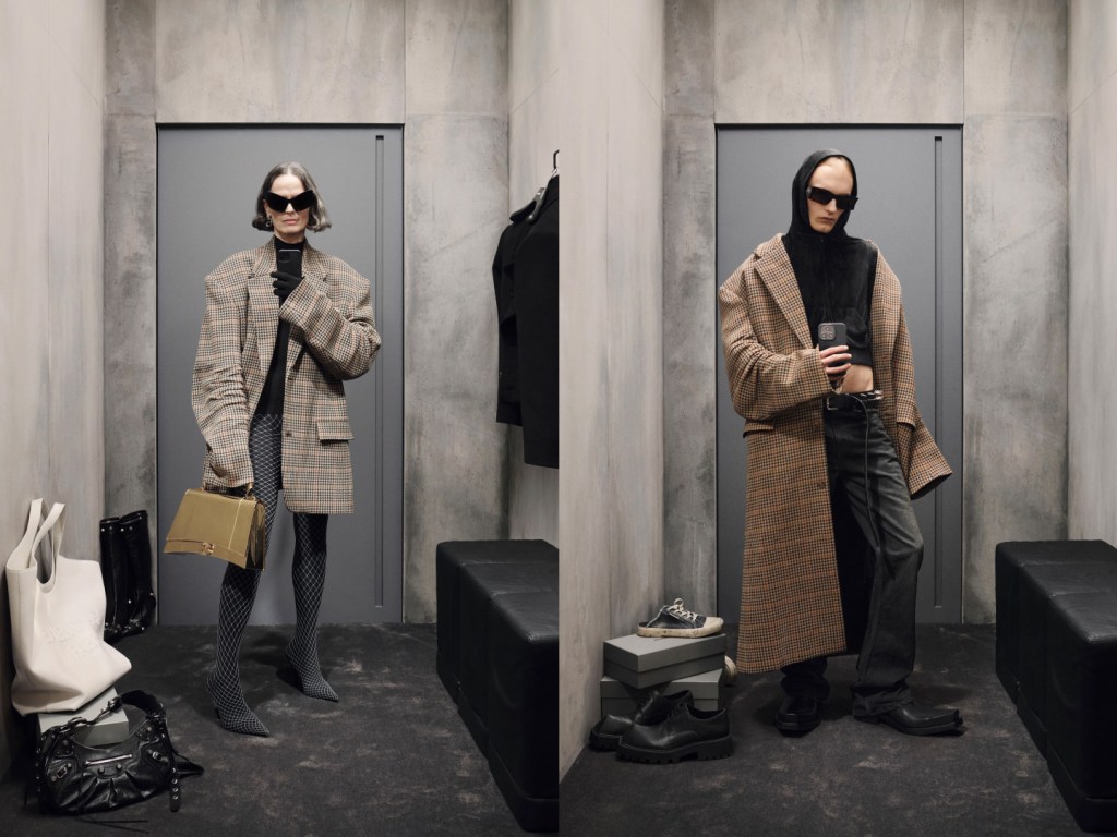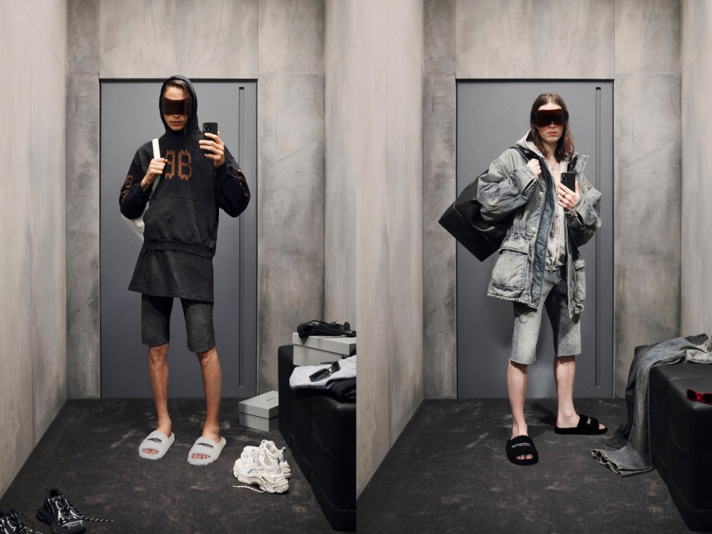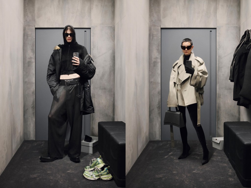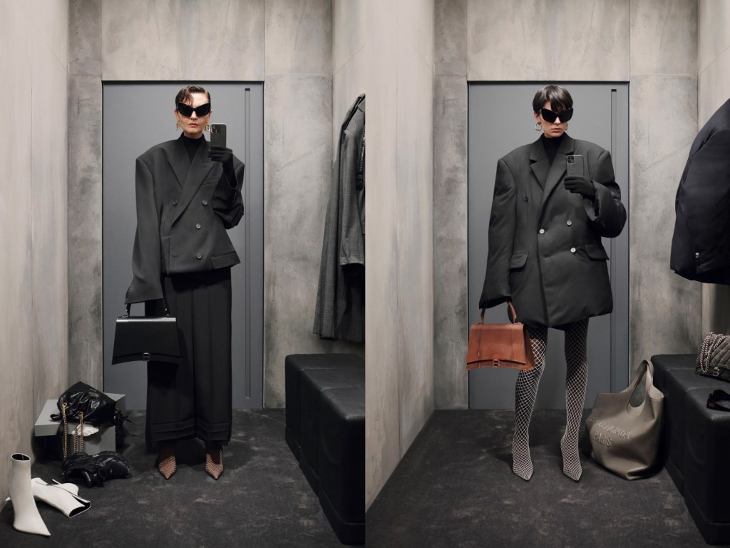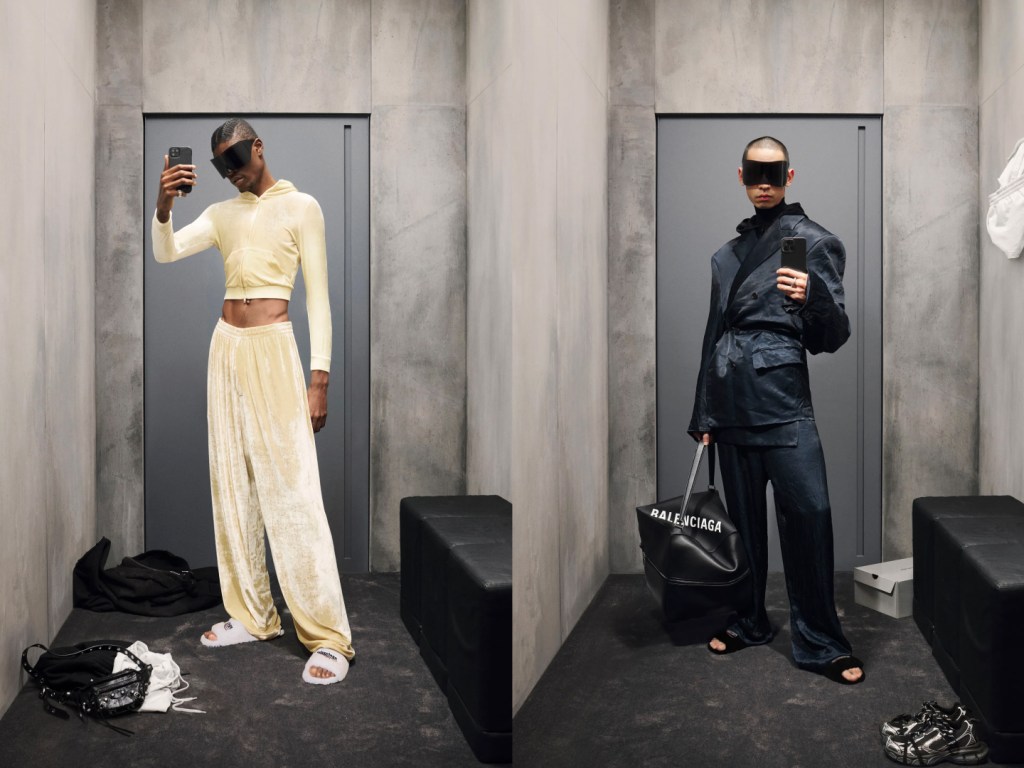 Demna Gvasalia presented his Balenciaga Pre-Fall 2023 collection with a very sober campaign, set in the dressing rooms of a boutique of the maison.