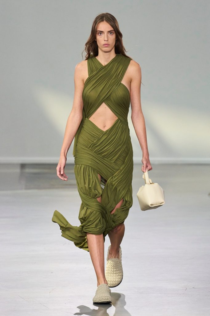 L’irlandese Jonathan Anderson, presenta una collezione surreale in cui i capi che sembrano modellati nella plastilina per ritrovare l’affiliato giocoso di sempre. JW Anderson ha utilizzato la plastichine, l’argilla da modellare inventata da William Harbutt nel 1897, Anderson ha scoperto che la Plasticine viene ancora prodotta nell’Irlanda del Nord, il luogo della sua nascita, e ha “giocato” per stupire ancora una volta con proporzioni e percezioni ottiche.