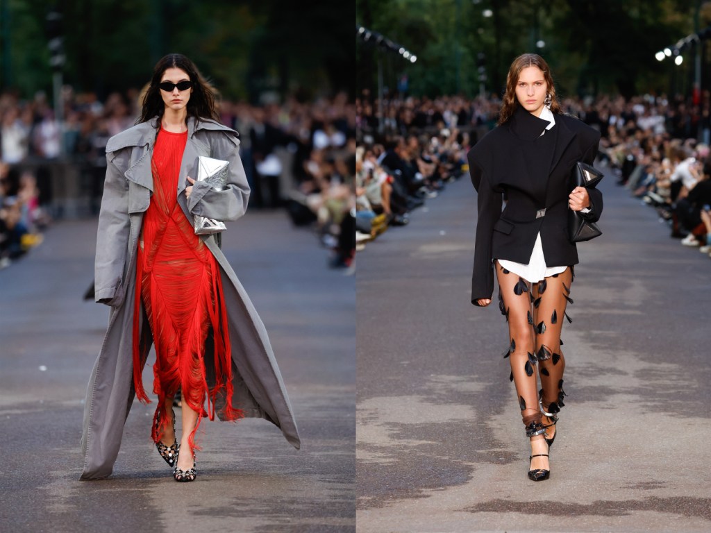 Tanto Dailywear con abiti maschili over, trech esagerati, capispalla dalle grandi dimensioni o carichi di dettagli utilitaristici, top con piume, bomber foderati stile The Attico.