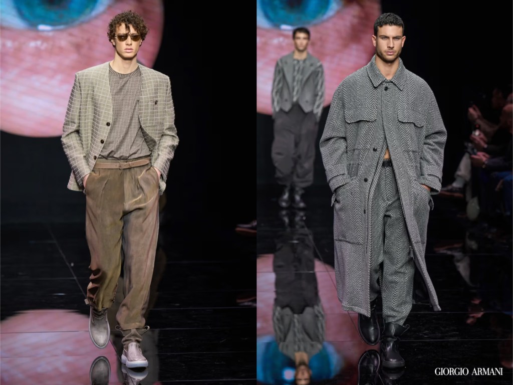 A trionfare il re Giorgio Armani con blazer destrutturati, pantaloni con le pinces e una serie di capi rieditati nelle proporzioni. «Sono tutte proposte che in qualche modo potrei mettere anche io, è una strada che ho sempre seguito e che in questa occasione è abbastanza enfatizzata», ha spiegato Re Giorgio. Aggiungendo che «il difficile è fare del consueto in maniera inconsueta».