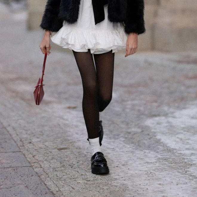 Fun if worn with white socks to match with a pair of jeans, or with a trench coat and skirt.