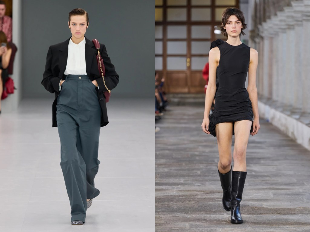 Clean lines and low profile cuts are the protagonists on the catwalks, a symbol of whispered elegance, never vulgar and without excess. The timeless classic shirt is back, the little black dress so loved by 90s supermodels like Kate Moss and the cigarette trousers, with a masculine cut.