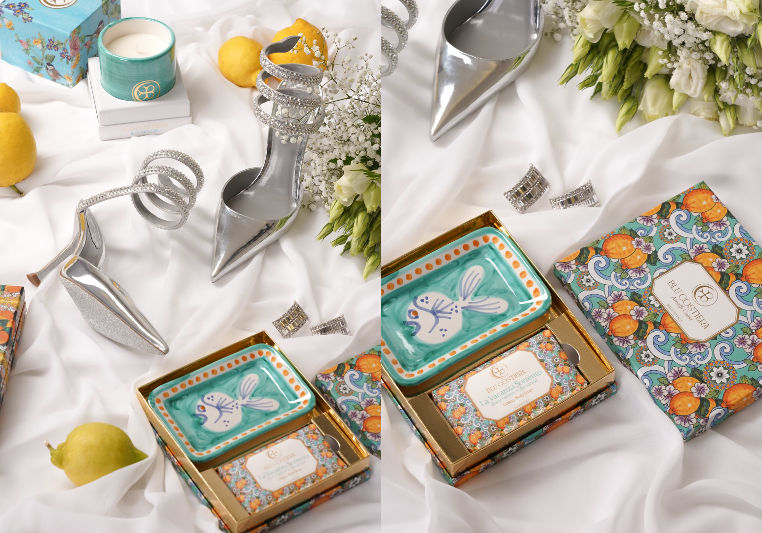 The ideal place to pronounce the fateful “yes” and celebrate love in a dream setting with a view of the Faraglioni. Choose a light and fresh dress, in silk, chiffon or organza, which is suitable for the style of the wedding and the informal and relaxed atmosphere typical of Capri, such as bohemian or romantic dresses. Even the short dress, with a tailored cut, 60s style which recalls the divas who came to Capri such as the iconic Jackie O’. Necklaces, earrings, bracelets to add a touch of elegance and sparkle to the look. Finally, a small clutch bag to carry essential items with you. Don’t forget the themed wedding gift for your guests, to tell the beauty of the place that hosts you, from the ceramic candle to the gift box with majolica soap dish.