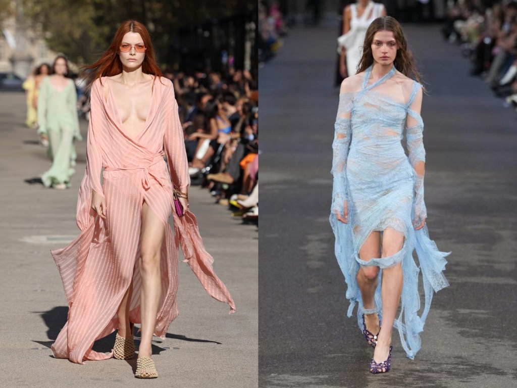 Via libera ai look estivi e coloratissimi, la lunghezza perfetta è midi, un po’ sotto al ginocchio, ma si può osare con maxi abiti, giocando con tessuti, volumi e trasparenze: seta, chiffon leggeri e impalpabili da indossare con sandali gioiello e microbag. Parlando di accessori, la tendenza SS24, li vuole bold, chocker brillanti, orecchini pendenti con pietre vistose, effetto sparkling.