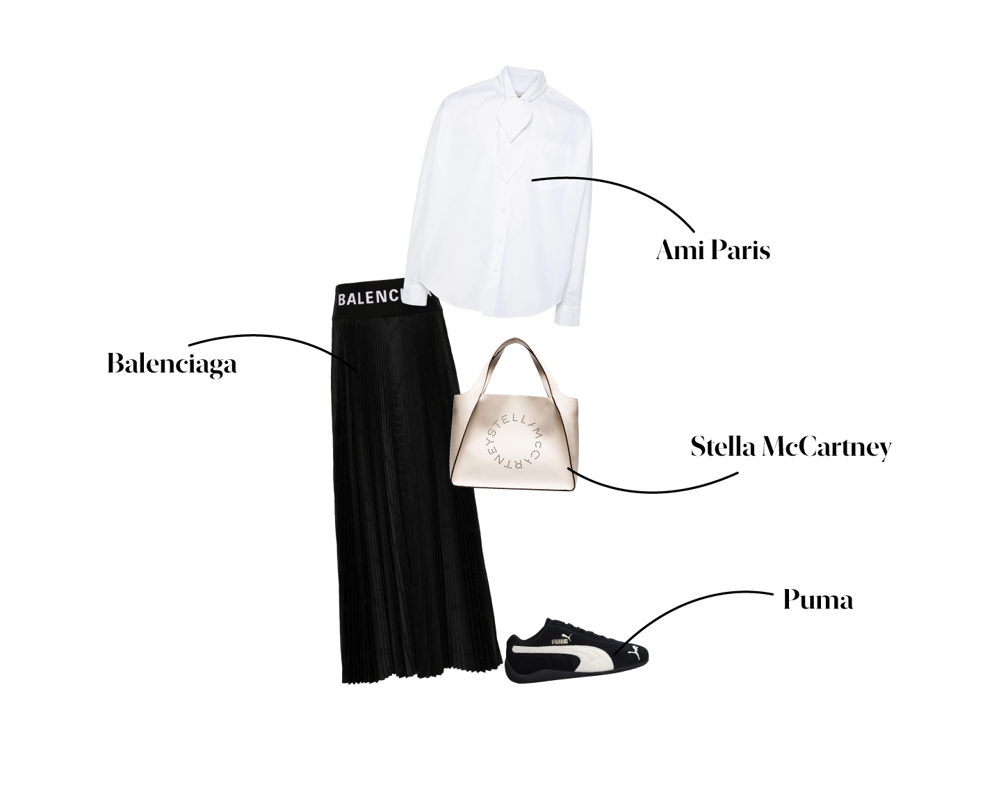 Idee di look: Gonna midi plissettata + camicia: Un look elegante ma fresco, adatto a quasi tutte le corporature. Abbina una camicia leggera o un top a una gonna plissettata per un outfit raffinato.