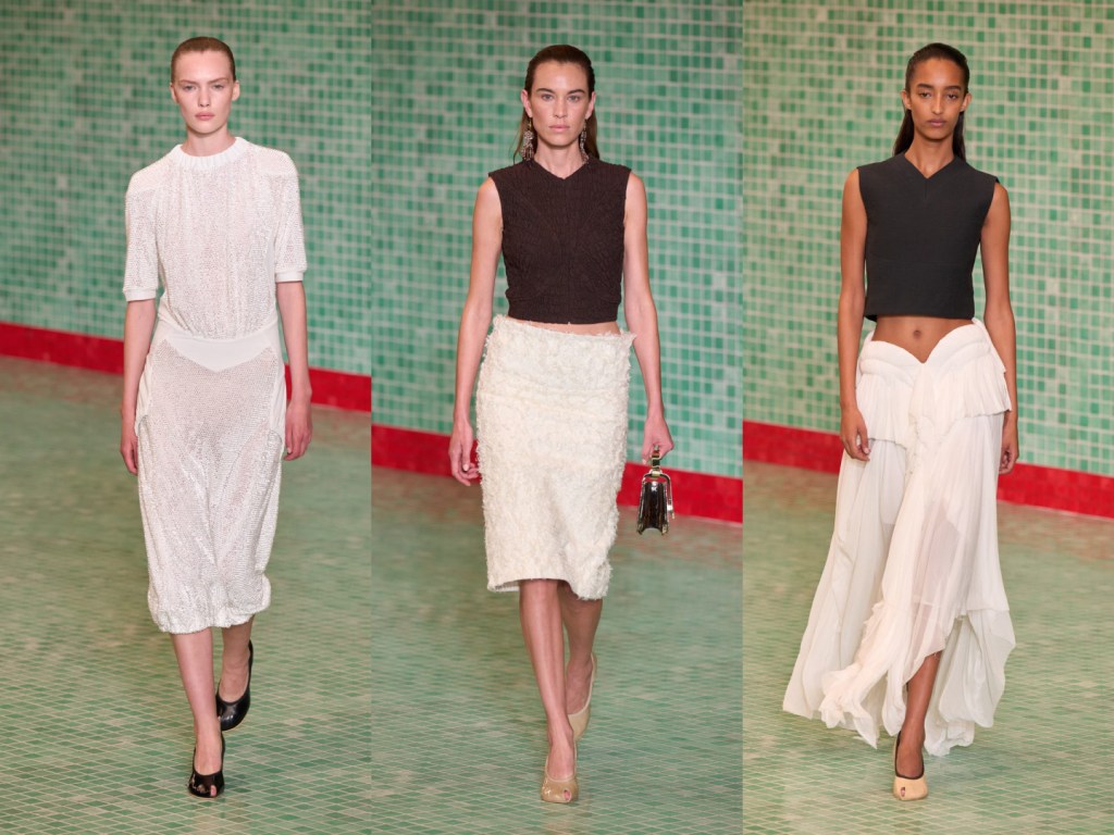 Jonathan Simkhai ha presentato una collezione che riflette il suo inconfondibile stile elegante ma contemporaneo. Per la stagione PE25, Simkhai ha puntato su capi fluidi, caratterizzati da tessuti morbidi e dettagli sofisticati. La palette di colori si è concentrata su tonalità neutre e pastello, con un occhio attento alla raffinatezza e alla femminilità. I drappeggi e i tagli strategici hanno creato un equilibrio tra sensualità e comfort, confermando il marchio come una scelta perfetta per le donne che cercano capi eleganti, ma allo stesso tempo facili da indossare.