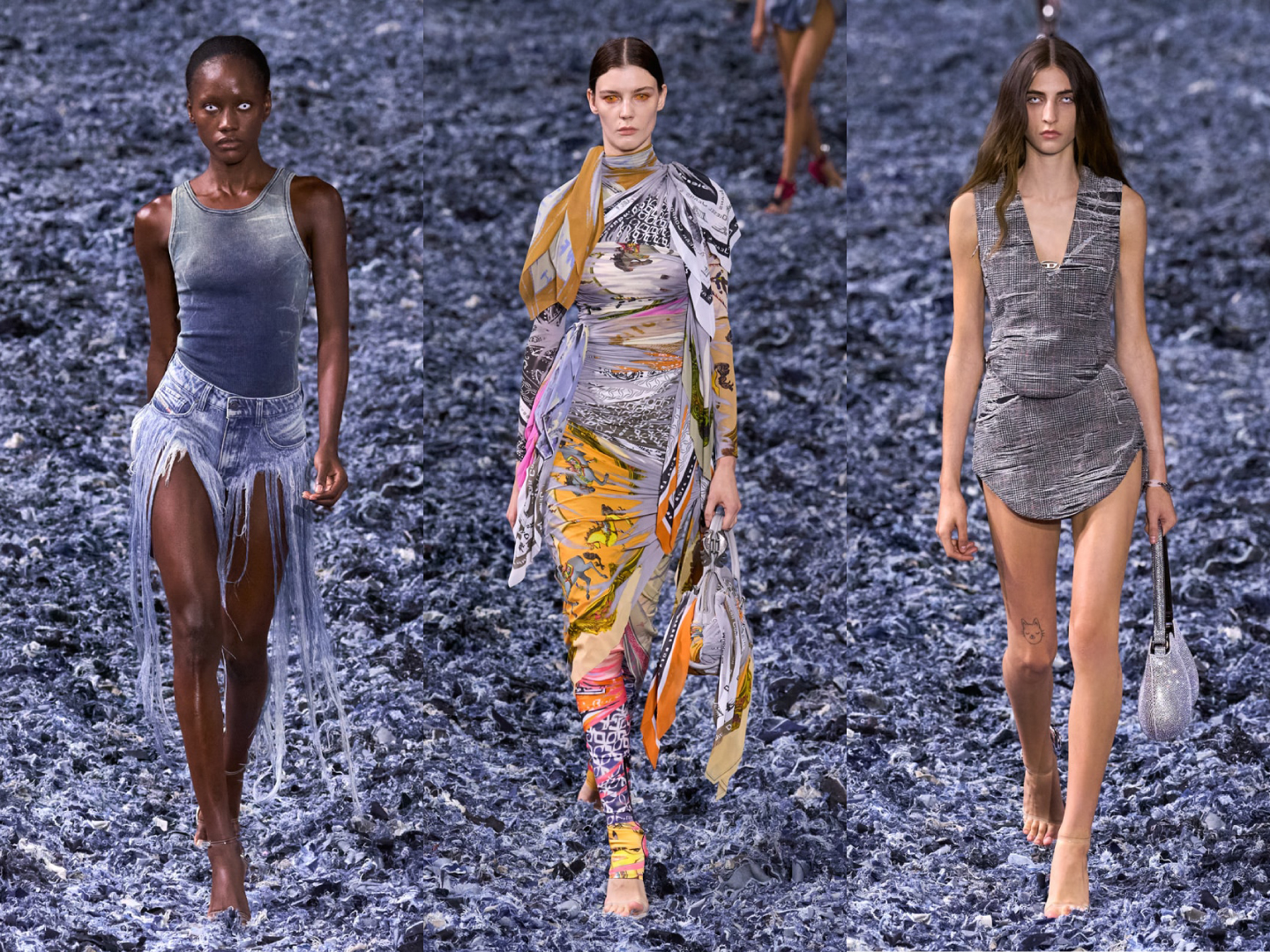 Diesel, sotto la guida di Glenn Martens, ha confermato il suo spirito ribelle e anticonvenzionale. La collezione è un mix di streetwear, denim destrutturato e pezzi sperimentali che giocano con volumi e texture. La sostenibilità è uno dei focus del brand, che ha integrato tecniche innovative di produzione a basso impatto ambientale, senza perdere il suo carattere audace e provocatorio. Diesel continua a evolversi come un marchio di riferimento per chi cerca uno stile urbano e all’avanguardia.