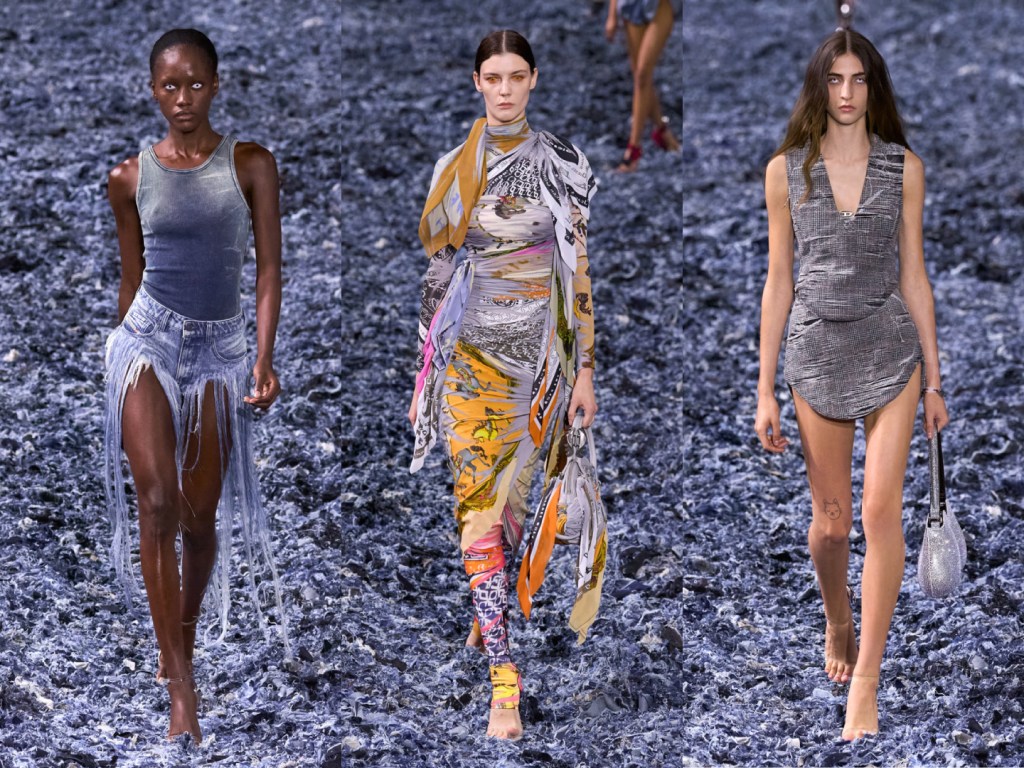 Fondato da Gilda Ambrosio e Giorgia Tordini, The Attico ha presentato una collezione audace e glamour. Il brand, noto per la sua attitudine irriverente e per le silhouette drammatiche, ha stupito con capi dall’allure provocante, giocando con colori vibranti, paillettes e dettagli oversize. Il dinamismo e la sensualità sono il cuore del loro stile, che richiama un’estetica anni ‘80 aggiornata con un twist moderno.