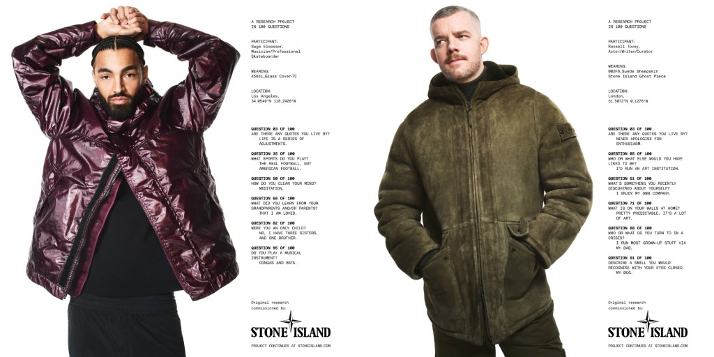 The presence of such diverse figures in the campaign reinforces the brand’s message: Stone Island is not just a technical clothing brand, but also a symbol of personal expression. Liam Gallagher brings his rebellious style, Peggy Gou her creative energy, Russell Tovey a contemporary elegance, and Sage Elsesser an authentic street attitude.