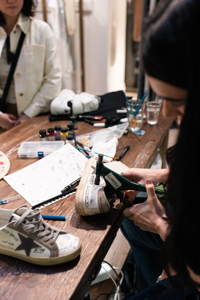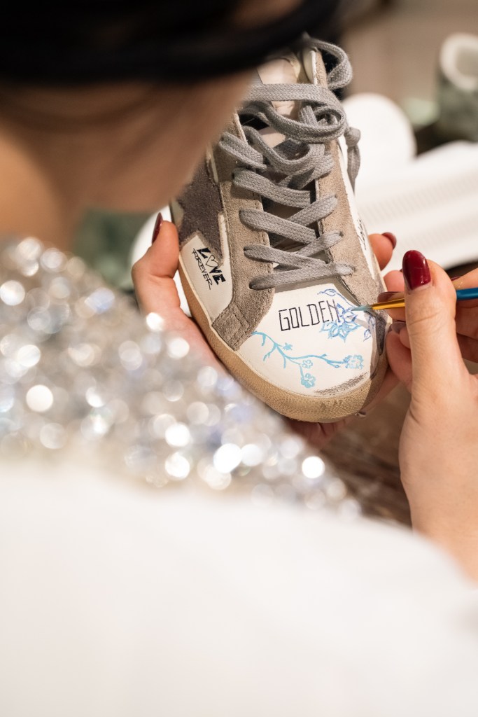 Fulcro dell’evento era la presenza di un artigiano Golden Goose in boutique per personalizzare le sneakers appena acquistate dai clienti. I visitatori hanno avuto l’opportunità di trasformare le proprie calzature in pezzi unici, grazie a tocchi artigianali realizzati dal vivo con tecniche innovative, colori, dettagli e personalizzazioni che hanno reso ogni paio di sneakers un’opera d’arte unica. Questo servizio esclusivo ha messo in luce l’essenza del brand Golden Goose, che unisce la cura dei dettagli artigianali tipici del Made in Italy con uno stile urbano sofisticato e di tendenza.