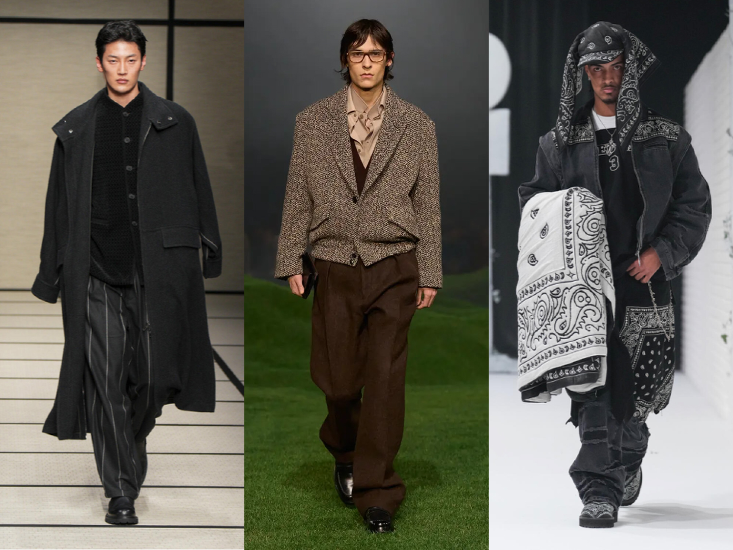 Pelliccia protagonista: La pelliccia è emersa come elemento centrale nelle collezioni maschili, con cappotti dal collo morbido extra-large in primo piano.
