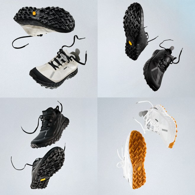 - Norda 001A: un classico moderno. Costruita interamente con upper in Dyneema®, offre una combinazione perfetta tra leggerezza, trazione e stabilità. L’intersuola in Vibram® SLE garantisce comfort su lunghe distanze, mentre la suola Vibram® Litebase Megagrip assicura presa su ogni terreno, asciutto o bagnato.